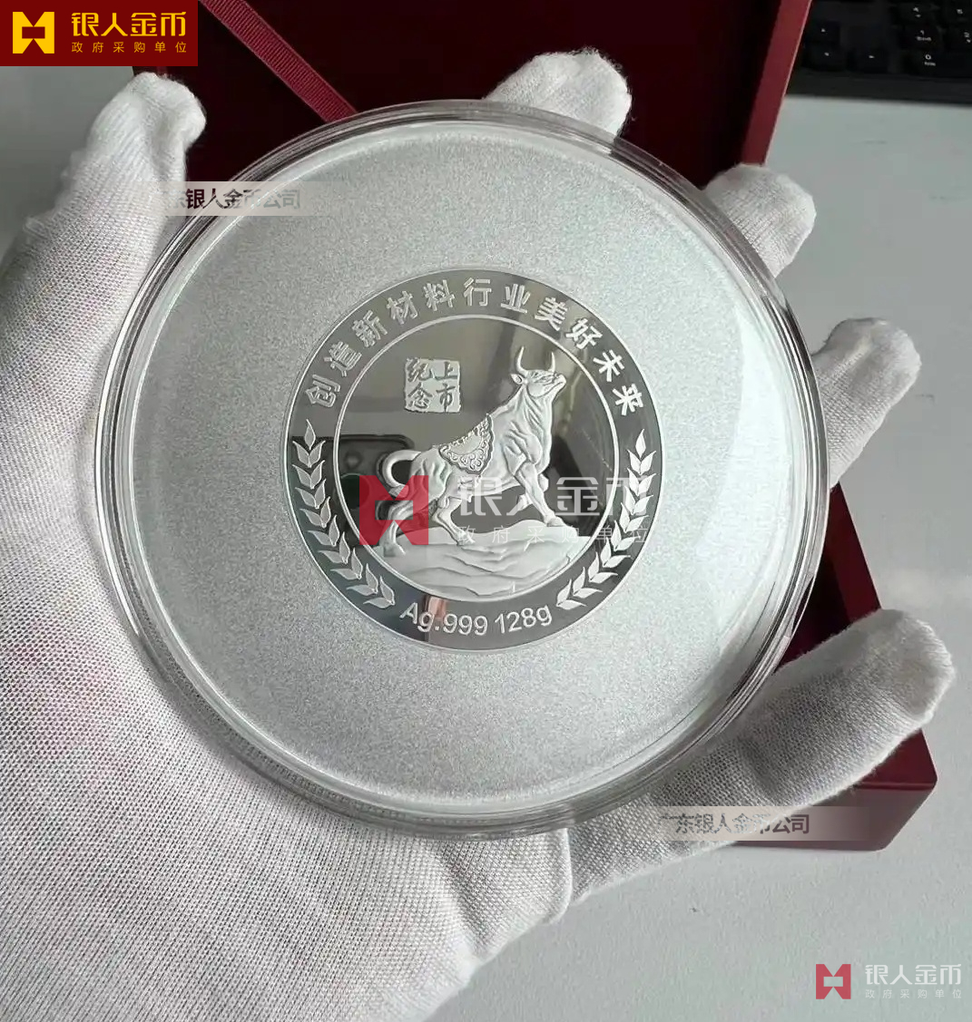 銀鑲金紀念章水晶鑲嵌獎牌擺件定制 金幣定制廠家 奇德新材上市紀念銀章定制