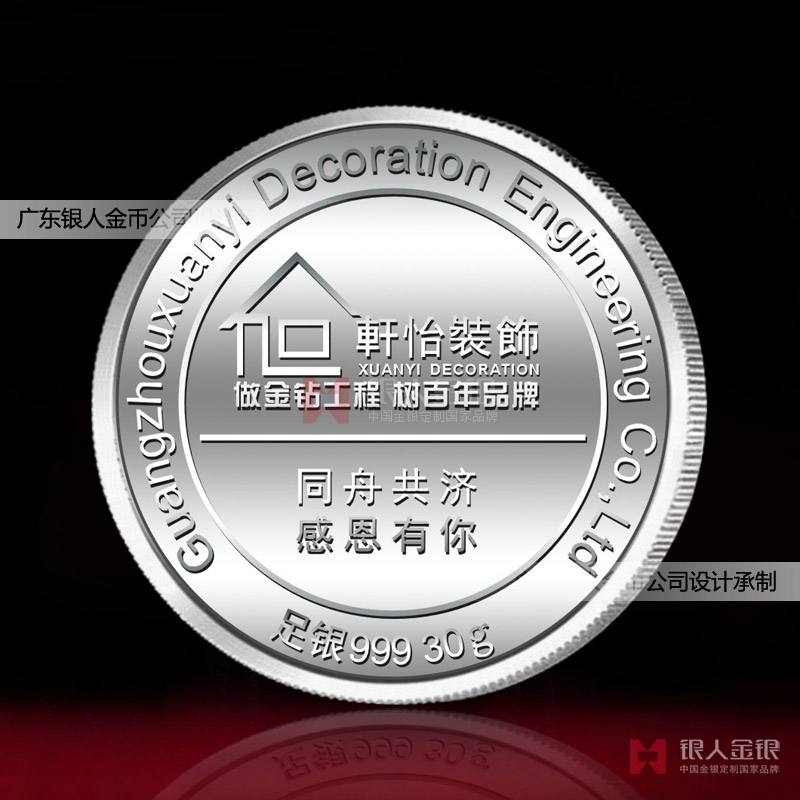 廣州軒怡裝飾設計工程有限公司值此公司品牌蝸窩家品牌創立六周年慶典之際,定制足銀紀念牌隆重紀念。