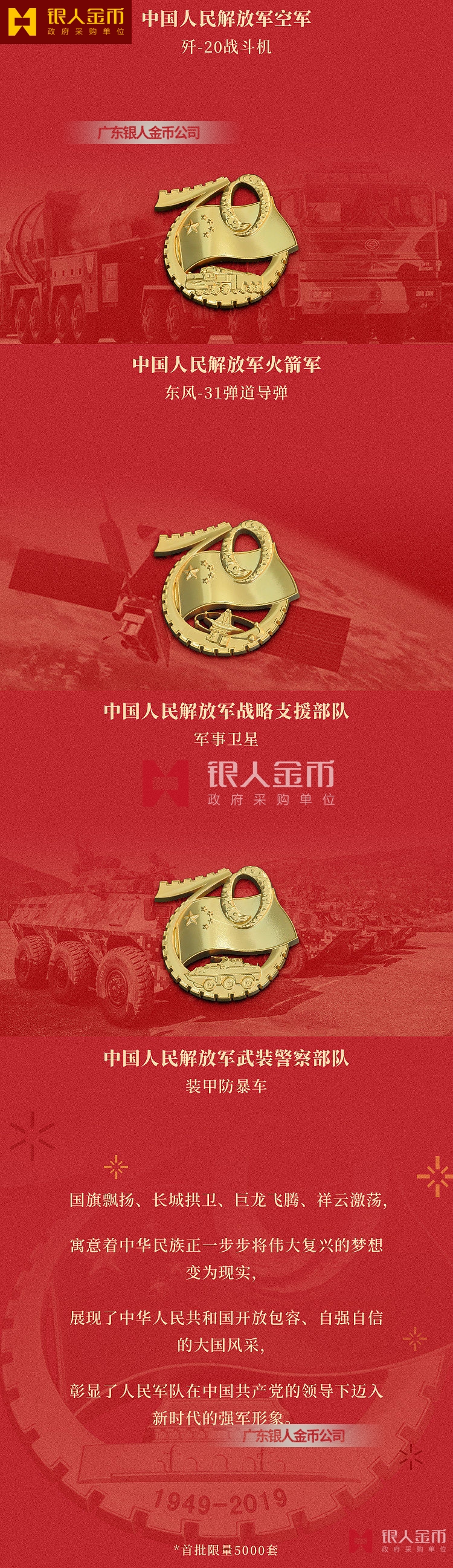 本套徽章禮盒是由中華人民共和國成立70周年閱兵系列紀念章徽章的設計單位、專利權人歸屬為“華夏特紡(北京)新材料研究院有限公司”祖國我為你驕傲,祝福偉大的祖國更加繁榮富強!