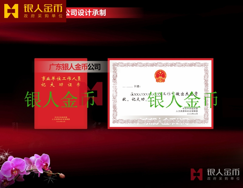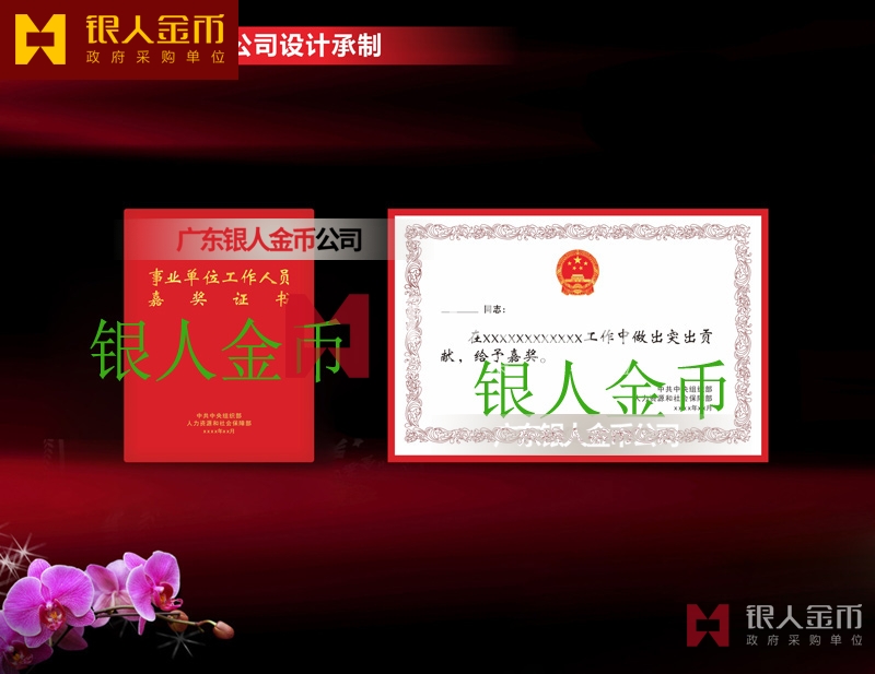 【證書制作】 廣東銀人金幣公司-榮譽證書制作廠家