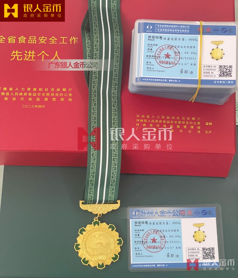 河南省食品安全工作先進(jìn)個人獎章定制_先進(jìn)工作者勛章定制_先進(jìn)集體獎牌定制_先進(jìn)證章證書定制定做制作